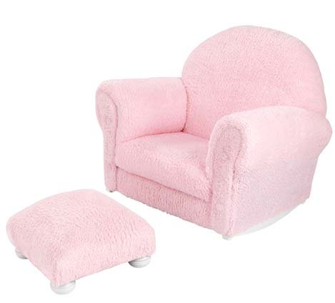 KidKraft Pink Chenille Rocker with Ottoman. It's hard work being a kid! Give your little one a cushy, cozy spot to put her feet up after a long day of play! When she's kicking back in the soft pink chenille with thick padded cushions, you can rest easy knowing that it's made sturdy with solid, natural wood bases for safety. Just right for storytime or watching the big game with Dad! Order Now! KidKraft Pink Chenille Rocker and Ottoman