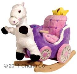 Once upon a time there was a Princess who had a very special carriage...(all that is missing from this fairy tale is your little Princess and her imagination)...and then the Princess lived happily ever after. Finally the perfect rocker for your perfect Princess. This wonderful, heirloom quality rocker also comes with an educational component too. Located on the front of the carriage, baby will find 4 shaped buttons that activate original songs that teach ABC's, 1-10, colors, shapes and more...Read more